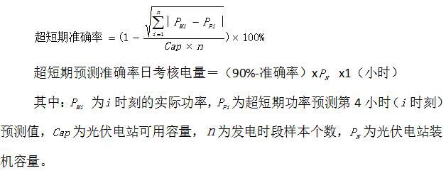 3)光伏电站超短期功率预测第4小时的准确率应大于或等于90%,小于90%时,按以下公式考核: