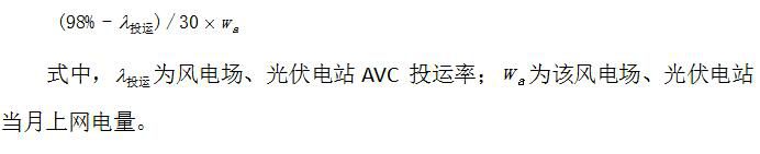 AVC投运率以98%为合格标准,全月AVC投运率低于98%的风电场、光伏电站考核电量按如下公式计算: