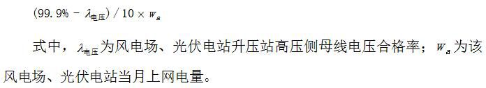 电压合格率以99.9%为合格标准,全月电压合格率低于99.9%的风电场、光伏电站考核电量按如下公式计算: