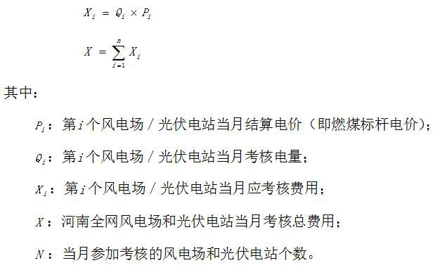 第二十七条 风电场、光伏电站应考核费用和河南全网风电场、光伏电站考核总费用的计算公式为: