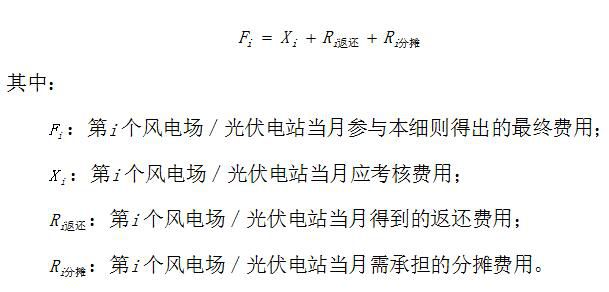 第三十条 风电场、光伏电站当月参与本细则得出的最终费用计算公式如下: