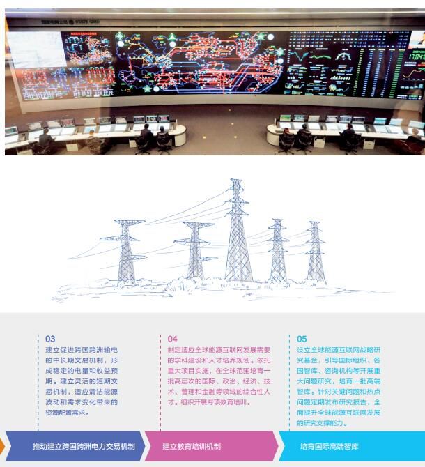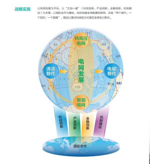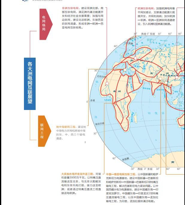 加快“一极一道”(北极、赤道)能源基地开发和电网跨洲互联,基本建成全球能源互联网