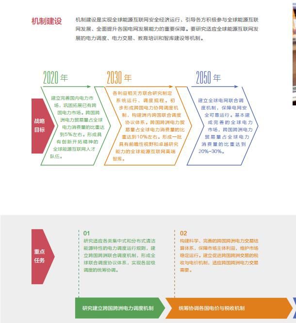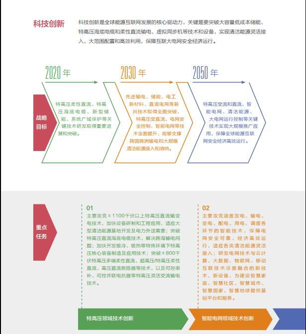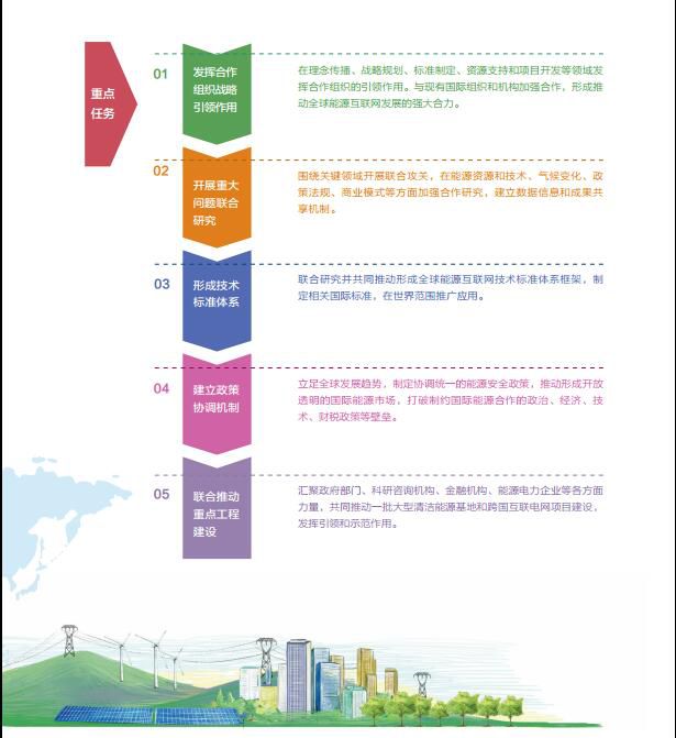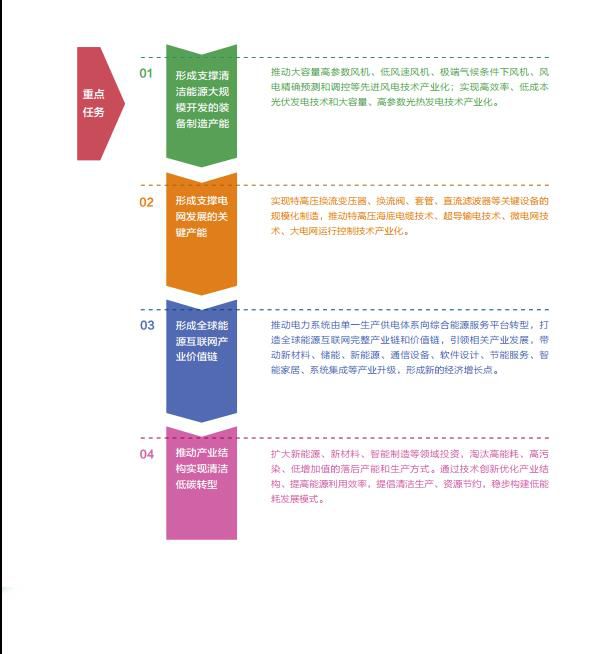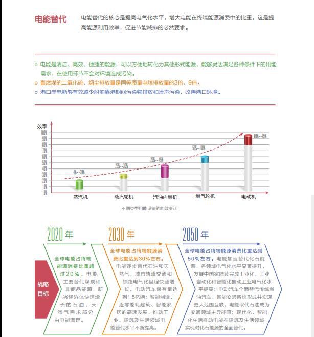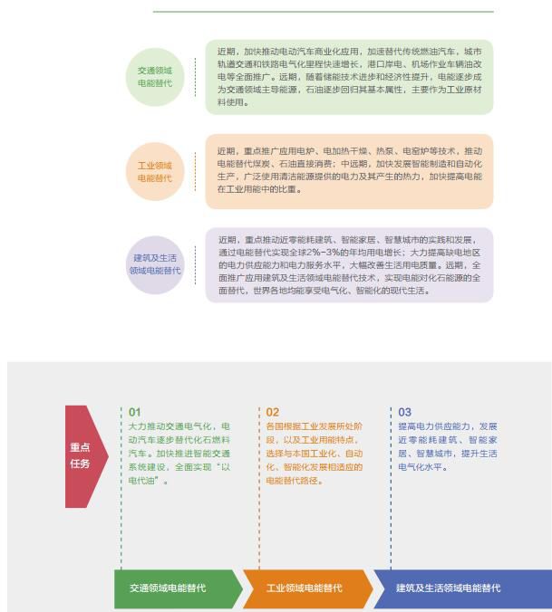 《白皮书》提出了八个战略重点,包括电网发展、清洁替代、电能替代、科技创新、产业创新、金融创新、机制建设、国际合作。