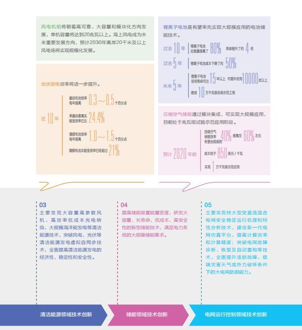 【清洁能源领域的技术创新】主要攻克大容量高参数风机、高效率低成本光电转换、大规模海洋能发电等清洁能源技术,突破风电、光伏等清洁能源发电虚拟自同步技术,全面提高清洁能源发电的经济性、稳定性和安全性。