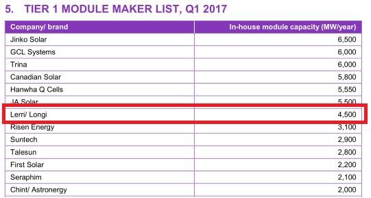此次入围Tier1意味着隆基乐叶进入全球主要组件供应商行列。