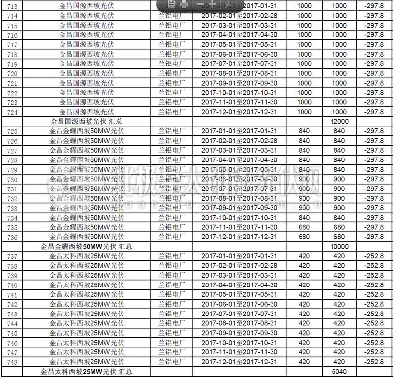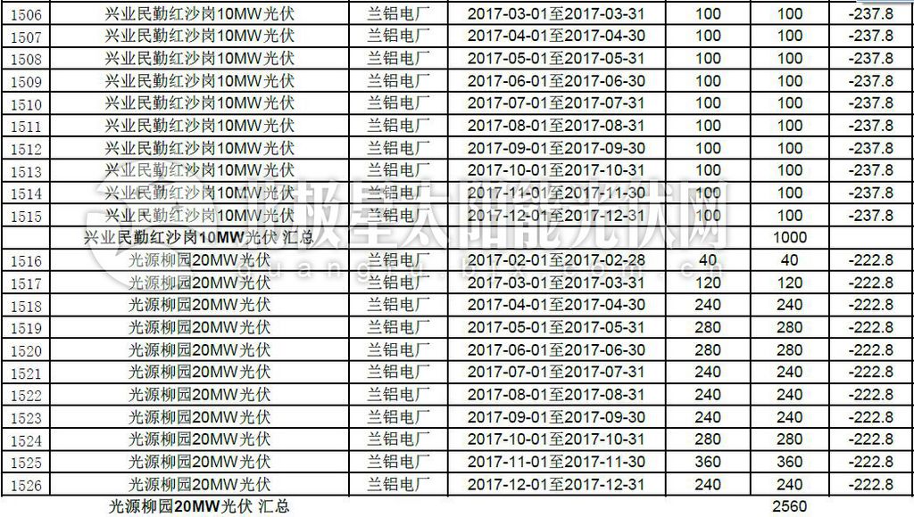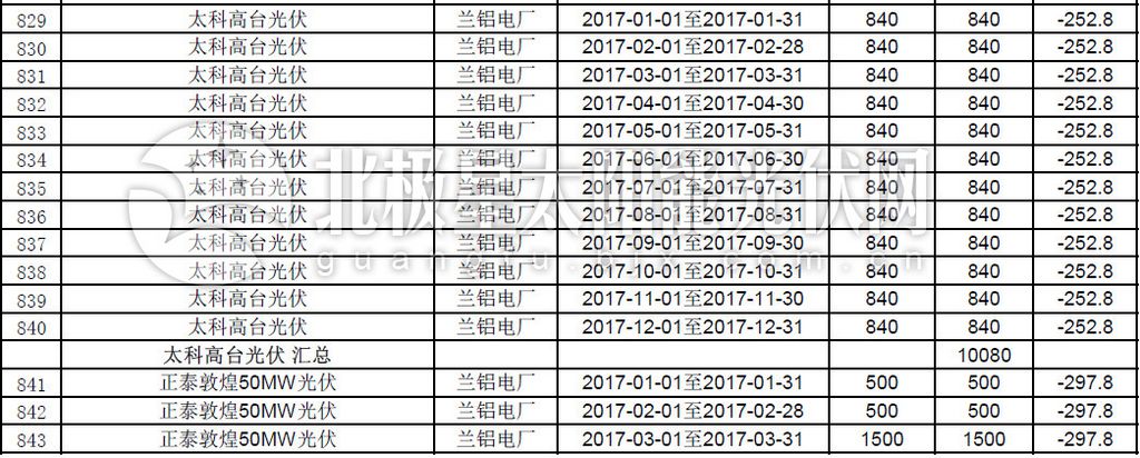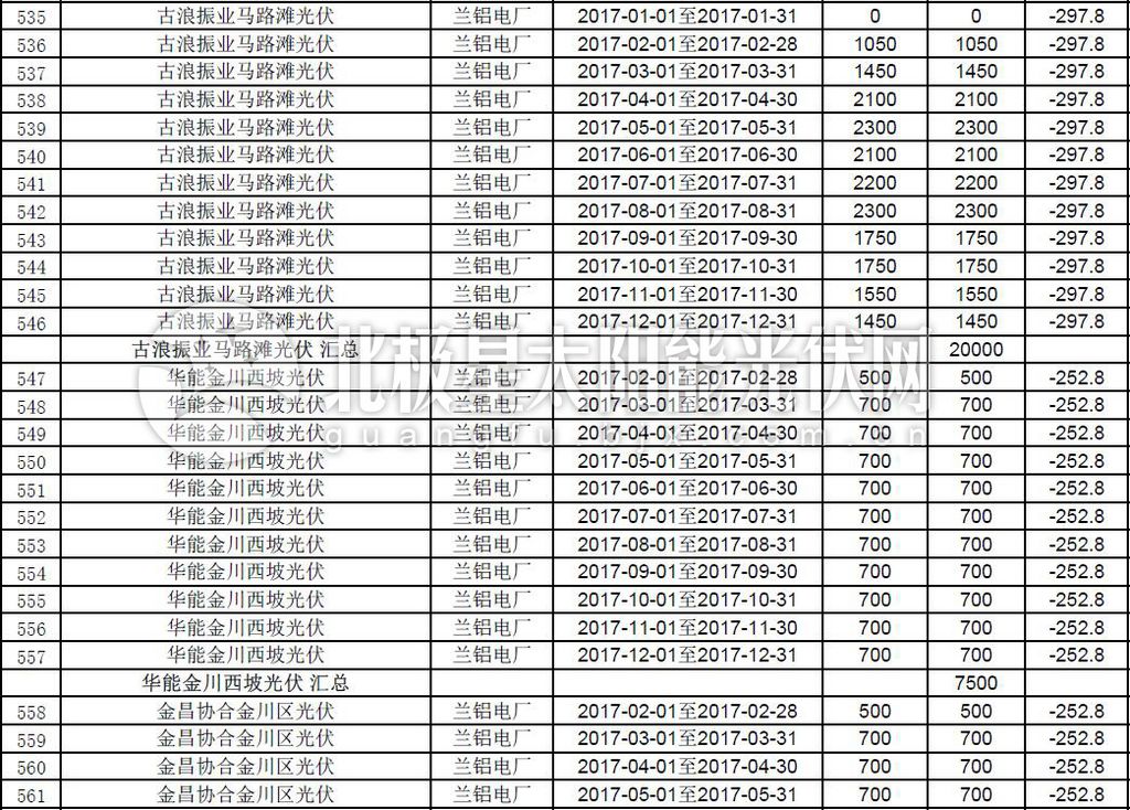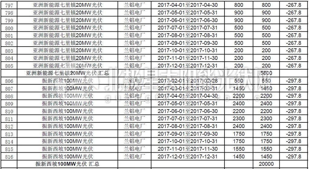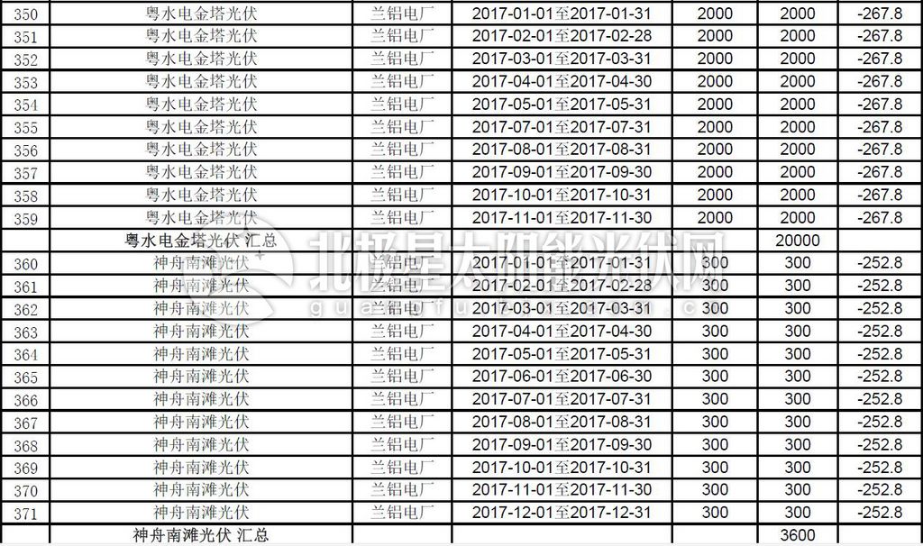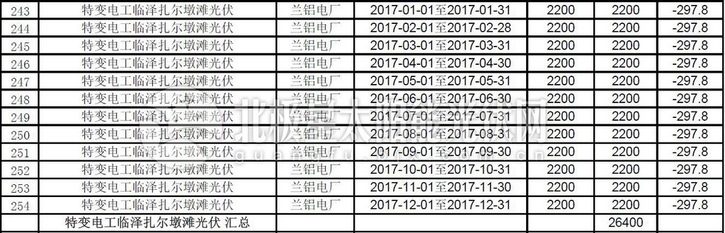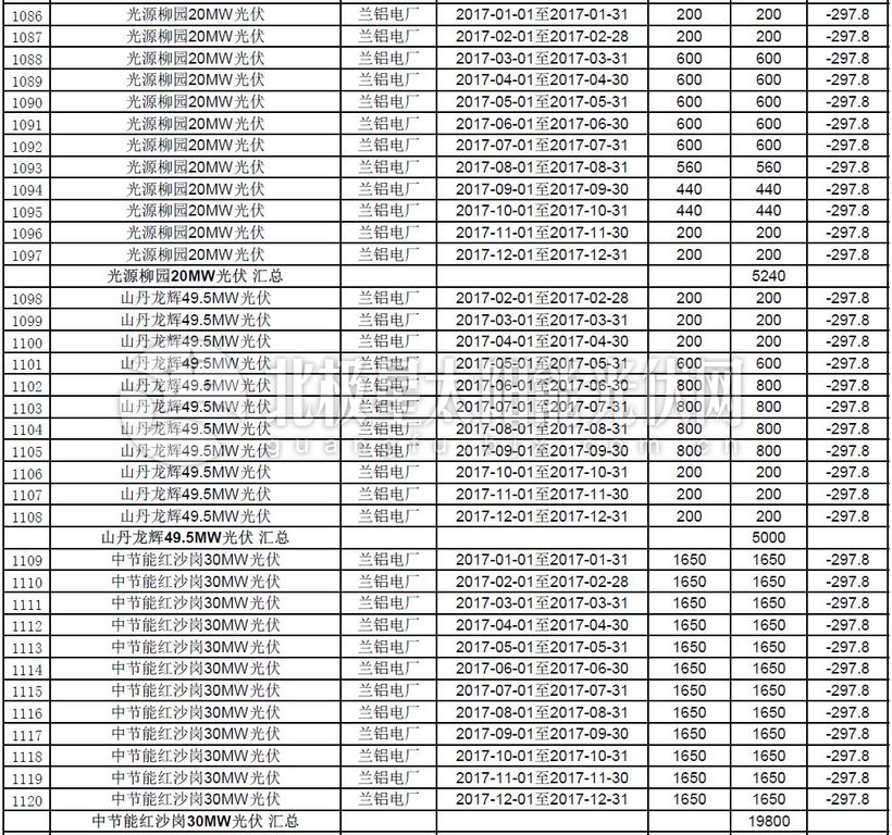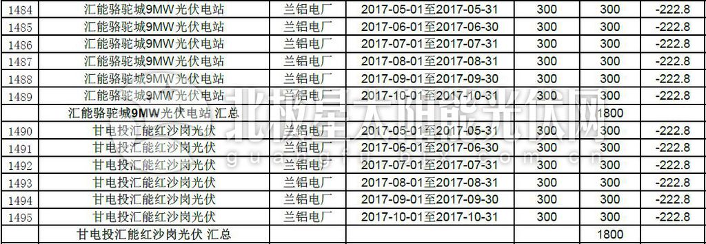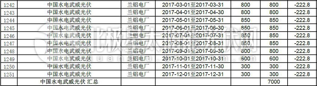 近日,2017年甘肃省新能源发电企业与中国铝业兰州分公司自备电厂电量置换交易结果出炉,本次交易以双边/集中撮合方式成交,新能源发电企业申报电量17.0992亿千瓦时,经调度安全校核后,共成交电量16.8874亿千瓦时。其中,含光伏企业100家左右,成交电价有0、-222.8、-230.3、-236.9、-237.8、-252.8、-257.8、-267.8、-280、-297、-297.8元/千千瓦时。