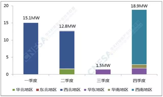 2016年四季度,投运项目主要分布在西南、华东和华南地区,装机规模在这三个地区的占比分别为85%、9%和6%。