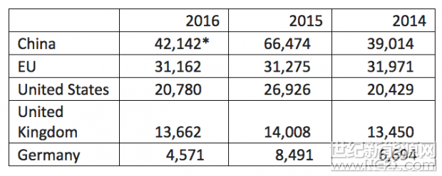 报告作者解释说:“中国上榜企业数量的减少与中国企业清洁能源业务上的收益下降关系不大。这71家企业的总清洁能源收益为432亿美元,而在去年8月的榜单上为437亿美元。”
