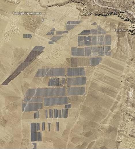 索比光伏网讯:“全球规模最大太阳能发电站”的头衔在近几年间数度易主。例如,2014年位于加州的550MW太阳能电站Topaz曾是世界第一,不过在去年11月被印度坦米尔纳德邦的648MWKamuthi太阳能电站超越。而现在,中国规模达850MW的太阳能发电站——龙羊峡光伏电站即将建成完工,暂时将登上全球规模最大太阳能电站的宝座。NASA拍摄的一组卫星图像揭开了这个太阳能电站的神秘面纱。