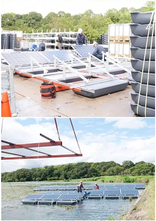 此次的百万瓦级光伏电站,是以一个单元支撑了9张太阳能电池板。嵌入了12个起“浮标”作用的树脂中空构件。