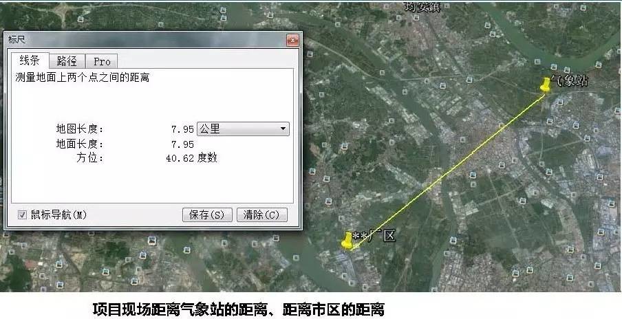 除了厂址基本信息外,还可以利用谷歌地球测算厂址距离气象站的距离,以及距离市区的距离,这样便于我们对于场只有一个大致的了解。