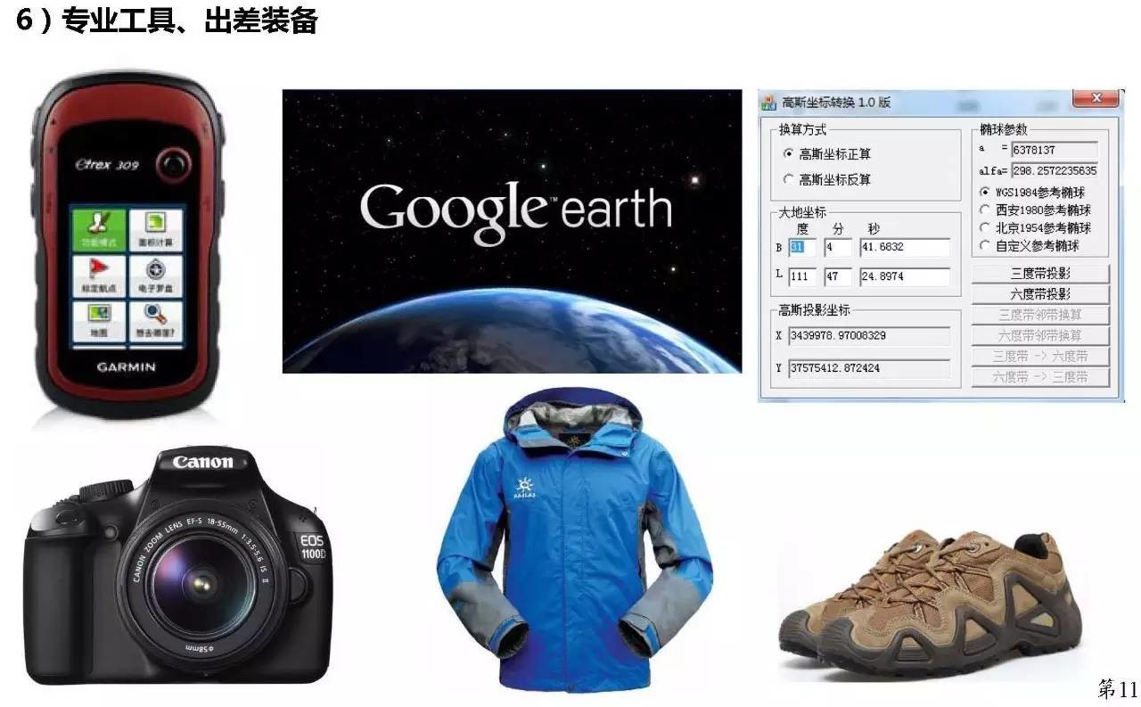 另外还要给业主大致的行程单,因为现场事件会很紧凑。同时还要准备一些现场工具,GPS,谷歌地球,坐标转化软件、装备、相机等,虽然现在手机功能很强大,但我还是喜欢用相机。