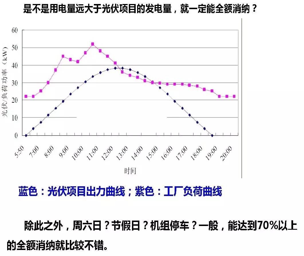 再通过综合考量用户的用电负荷与光伏组件出力的匹配程度,来选择项目的模式,用电负荷达到出力的70%左右就很不错了。