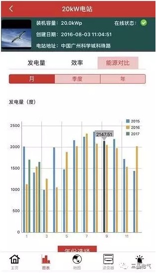 据小编了解,三晶电气开发了晶太阳云监控系统APP正好满足家庭光伏电站的运维需求。逆变器通过GPRS将数据采集到监控数据库,而通过APP实时远程监控整个系统的运行状态。晶太阳云监控系统APP可实现快速扫码注册,优化了用户体验,同时支持电量对比,方便进行发电量的对比分析。更重要的是,支持组串电流监测功能,可快速判断组串运行状况,及时排除组串运行故障。成为广大中小型家用系统集成商方便,快捷的电站监控及运维平台。