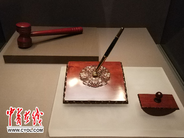 宣布中国重返世贸组织的木槌和中国重返世贸组织的签字笔