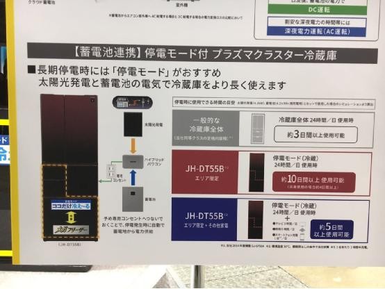 夏普的出发点就是如果停电了,蓄电池降为冰箱提供电力支持,根据冰箱不同冷藏柜提供3-10天的供电周期。