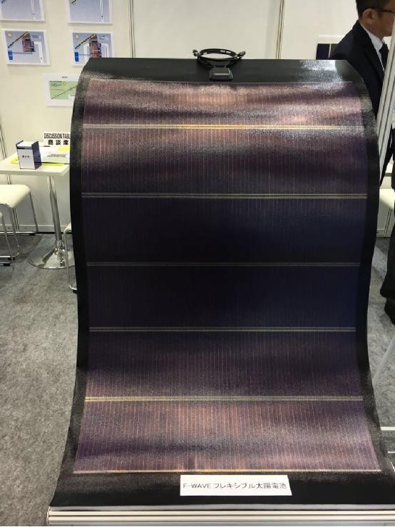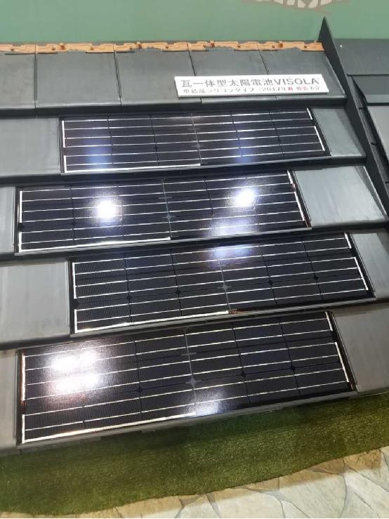 这次观展第二个完全不同于国内的就是光伏屋顶的电池设备已经基本不再使用多晶组件,取而代之的是瓦一体型太阳电池、树脂材质屋面电池、柔性单晶电池等,既解决了传统组件型屋面的美观度问题,又提高了光电转化率。
