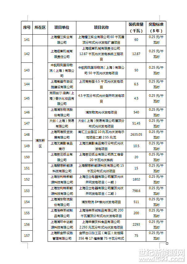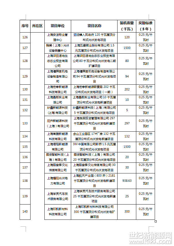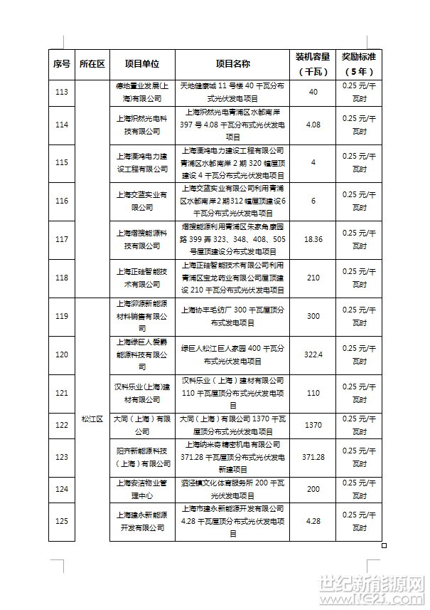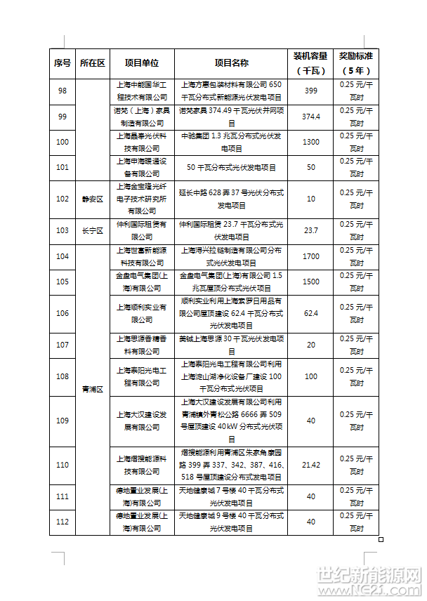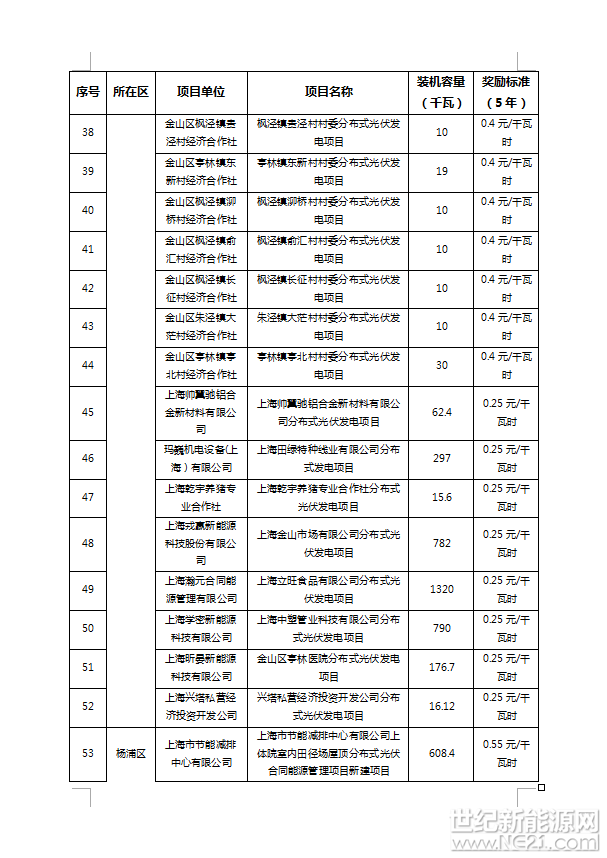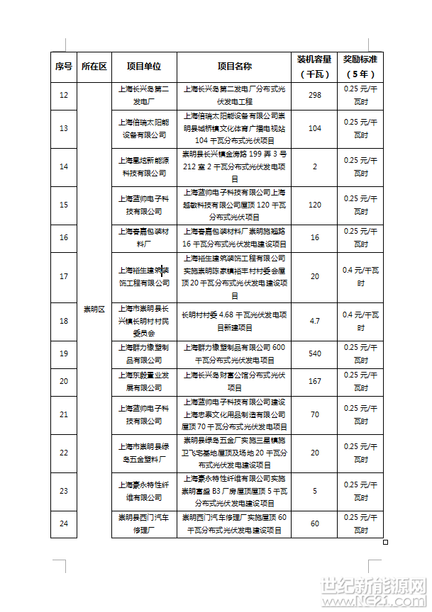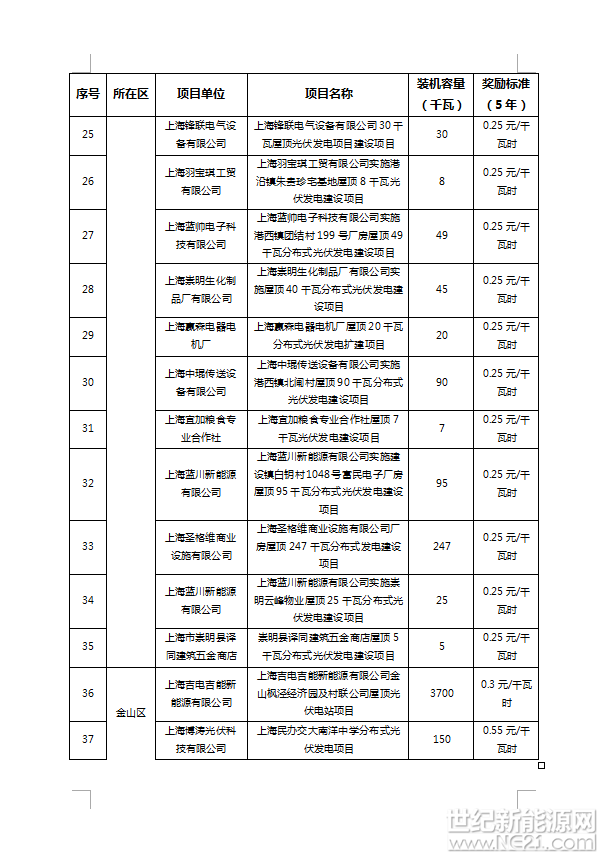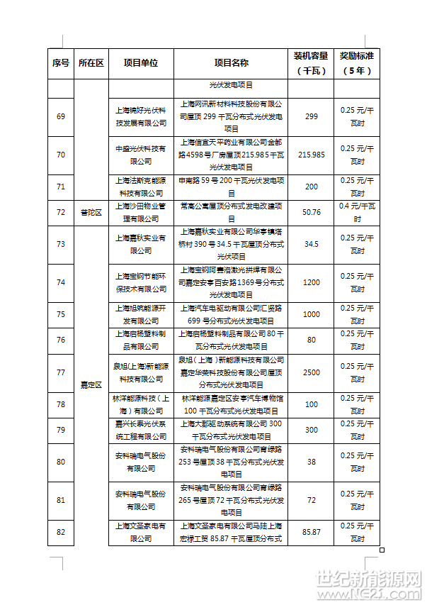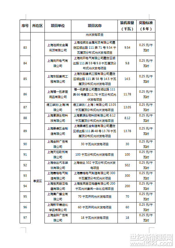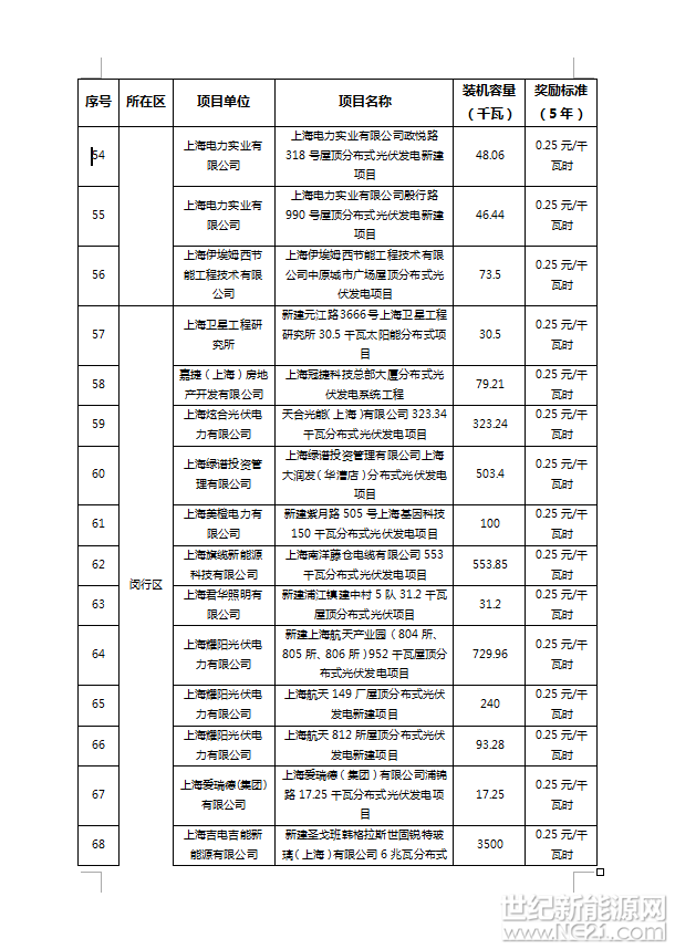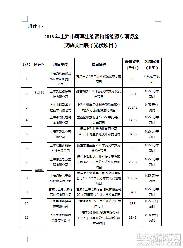附件:1、2016年上海市可再生能源和新能源专项资金奖励项目表(光伏项目)