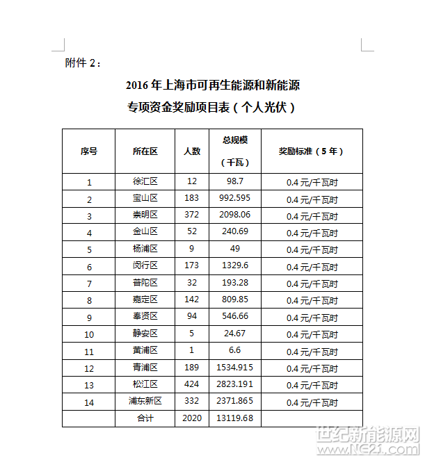2、2016年上海市可再生能源和新能源专项资金奖励项目表(个人光伏)