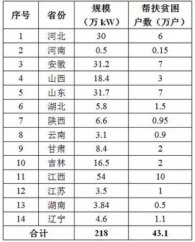 分布式电站2.18GW,涉及14省,计划帮扶43.1万贫困户;