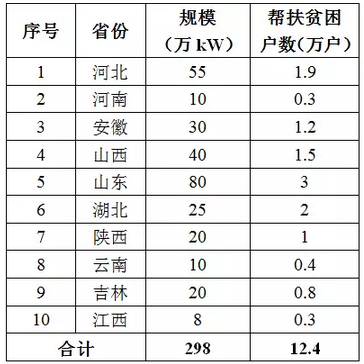 地面电站2.98GW,涉及10省,计划帮扶12.4万贫困户。