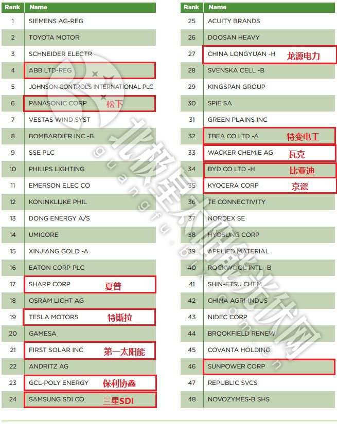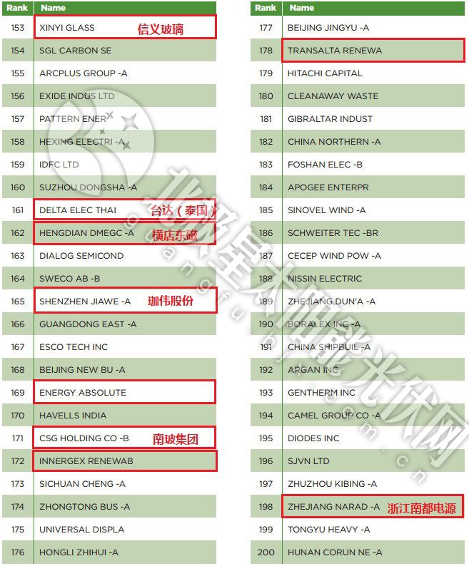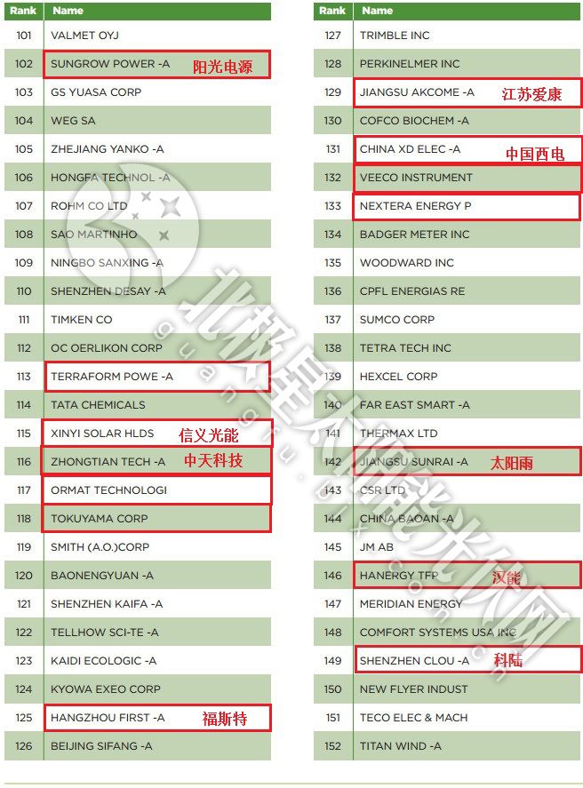 索比光伏网讯:日前,全球绿色企业200强榜单正式出炉。该榜单由非营利组织ASYOUSOW和调研公司CORPORATEKNIGHTS联合发布,排名根据彭博新能源财经统计的各企业清洁能源收入。据悉,只有市值超过10亿美元(截至2016年第四季度)且总收入至少10%源自清洁能源的企业才列入彭博的统计名单。
