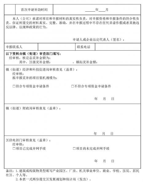 2.由镇(街道)经济和科技促进局联合镇(街道)财政局及区供电局对申报材料进行审核。审核通过后填写《佛山市禅城区分布式光伏发电应用项目补助奖励资金申请表》(见附件)报区发展规划和统计局(发改)复审。