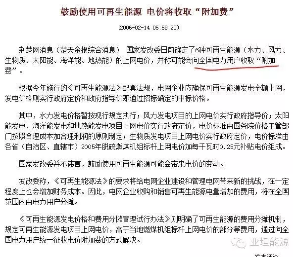 根据《可再生能源法》所有用于新能源的补贴资金,都由全国的电力消纳用户进行附加费形式进行征收。