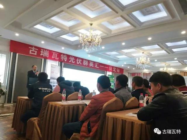 索比光伏网讯:3月10日,古瑞瓦特光伏群英汇在河北保定迎来2017年首站,本场会议以专业的小型会议为主。针对每位前来参会的客户,采用精准的服务和专业的培训方式,照顾到每一位客户的需求。会议议程也重点聚焦为三点:光伏政策的讲解、逆变器的实操演练以及客户的经典案例分享。