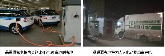 首先用比亚迪E6电动出租车(电池电压约320V,最大充电电流130A)进行双车双充测试,晶福源120KW充电桩双枪可同时输出电流达150A,完全满足此类车辆的充电要求;然后山西国冀还特意找来 大运电动物流车(电池电压约590V,最大充电电流200A)进行充电测试,晶福源充电桩单枪可输出电流达200A,可以很好满足高电压平台电动汽车充电的要求。随后,进行连续一周的满负荷充电运行测试,得益于充电桩宽通道结构及先进的散热风道设计,保证充电桩内所有部件始终在适温下工作,高温环境下充电桩可长期稳定运行不降额。