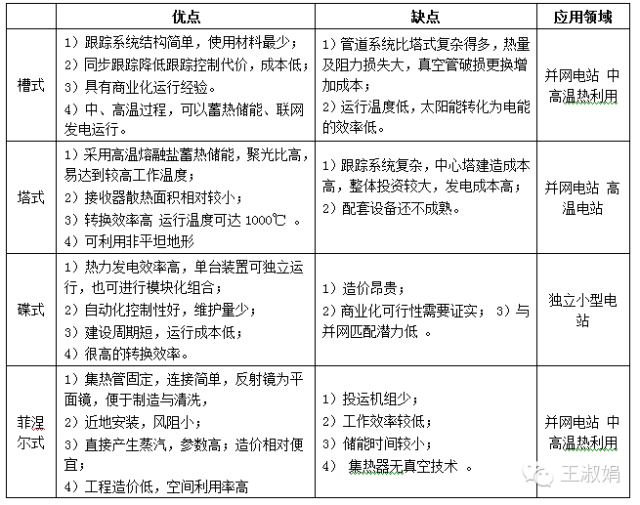 上述四种方式中,槽式和塔式是目前两种主流的光热利用技术。就目前而言,槽式技术更为成熟,塔式技术更具发展潜力。