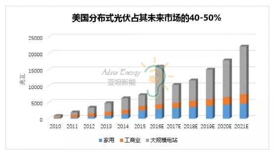 美国分布式光伏占其未来市场的40%-50%