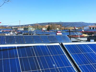 我收回目光,果见眼前蓝光闪闪,几乎每家屋顶上都有蓝色的太阳能电池板,把这个少树的小山村装饰得生机勃勃。
