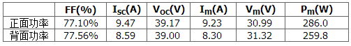 图3(a)为双面电池正反两面的I-V特性曲线,可以看出在STC条件下,n-PERT双面电池的正面功率可以达到5.2 W,背面功率可以达到4.7 W,电池的双面率为90%。n-PERT双面电池相对于单面电池的效率增益难以通过单片电池来衡量,一般将多片太阳电池采用串联或并联的方式将电极连接起来,采用EVA、玻璃、背板等材料进行封装,成为组件来衡量效率的增益。双面电池组件的正面采用玻璃+EVA 进行封装,背面可以采用EVA+玻璃封装或者EVA+透明的背板进行封装,保证太阳光可以透过封装材料照射到电池的背面,如图3(b)所示。