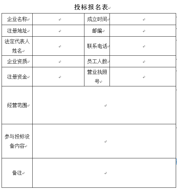 4.2报名要求:报名申请单位须先填写《投标报名表》,通过传真(加盖公章)或电子邮件(PDF格式,加盖公章)报名;