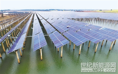 这是3月16日拍摄的江西奉新“渔光互补”光伏发电一期项目。 新华社记者 万象摄