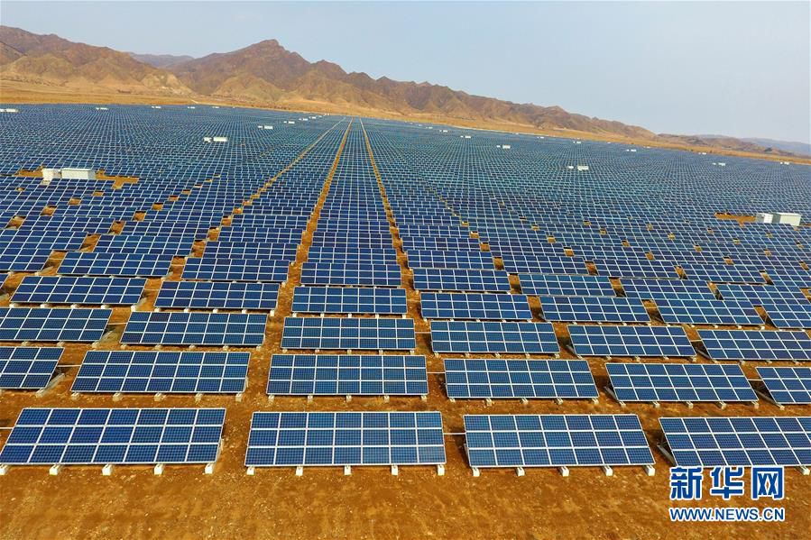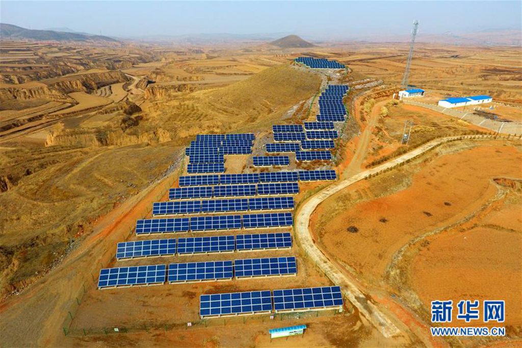 这是3月21日拍摄的山西省天镇县晋能公司光伏扶贫电站一角。