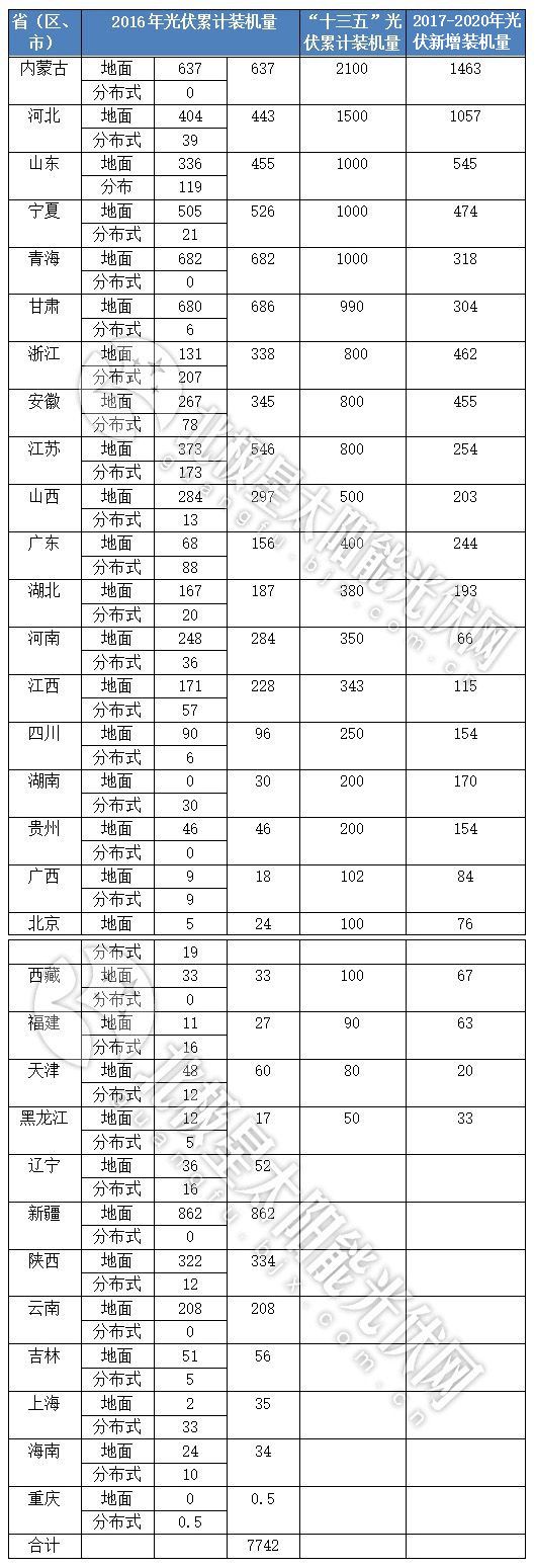 索比光伏网讯:随着我国各省份的光伏“十三五”装机规划陆续出台,一张“地方十三五光伏累计装机量地图”已初具雏形。