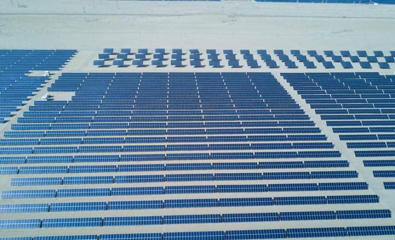 这是位于青海省海西蒙古族藏族自治州格尔木市的光伏产业园区一角(3月23日摄)。据国家电网青海电力公司数据显示,2011年至2016年底,青海光伏累计发电量267.23亿千瓦时。