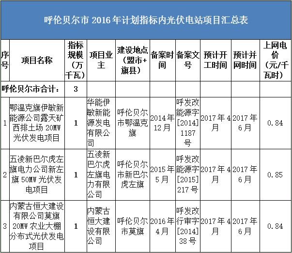 附件:呼伦贝尔市2016年度计划指标内光伏电站项目汇总表