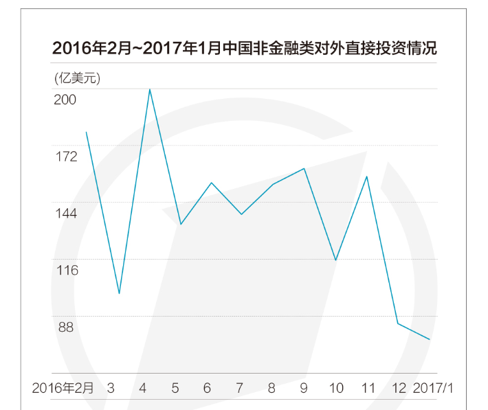 2016年,中国境外非金融类直接投资达1701.1亿美元。