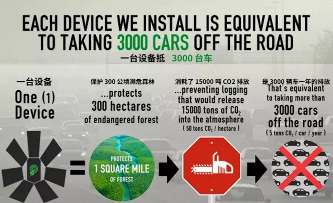 图一为运作原理,图二为气候变化上的作用 来自:Rainforest Connection