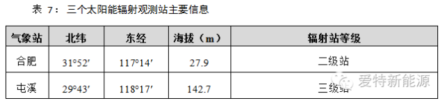 安徽省共有2个太阳能辐射观测站,它们的主要信息如下表所示。