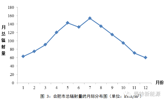 合肥市的年总辐射量为1253 kWh/m2,属于太阳能资源“丰富”地区;