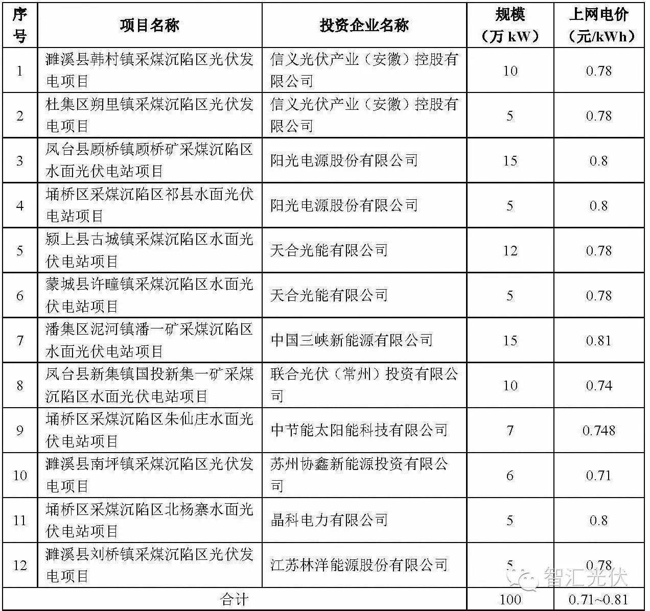 表15:安徽两淮领跑者基地项目分配情况