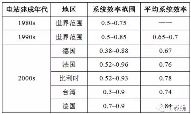 下图为不同系统效率时的度电成本如下图所示。