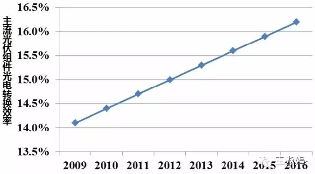 2016年,很多地方对光伏组件提出达到“领跑者计划”标准:单晶17%、多晶16.5%,预计由此带来的光伏系统成本降低1~3%。未来,整个行业由于光伏组件效率提升带来的光伏电站成本降低可以期待。