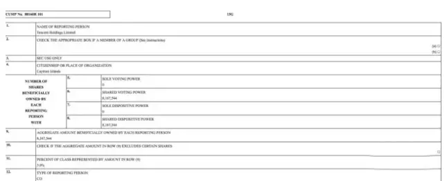 3月28日,电动汽车公司特斯拉向美国证监会网站提交了一份股东变动文件。该文件显示,腾讯控股持有特斯拉8,167,544股股票,占总股本的5%。由此,腾讯控股成为了特斯拉的第五大股东。