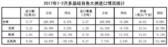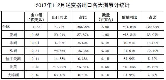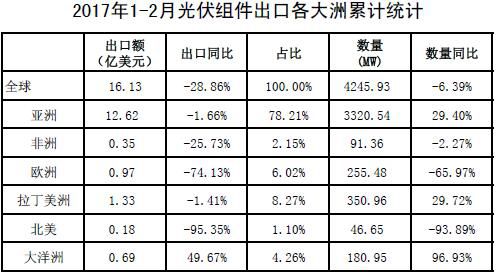 原标题:2017年1-2月中国光伏产品进出口数据显示,北美和欧洲等传统市场需求降幅明显,新兴市场正爆发活力