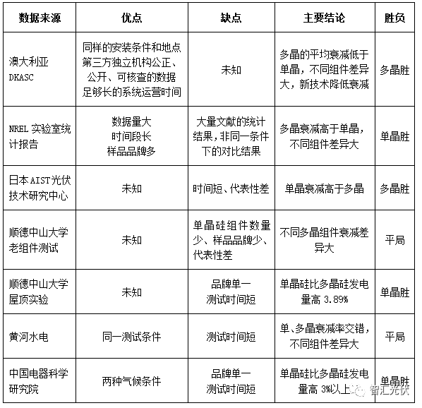 即使是实证数据也有很多,大家不能都拿对自己有利的数据说事,还是要尊重对手。正是对手的进步,才促进行业的进步。在此,收集了一些单、多晶发电量对比数据。